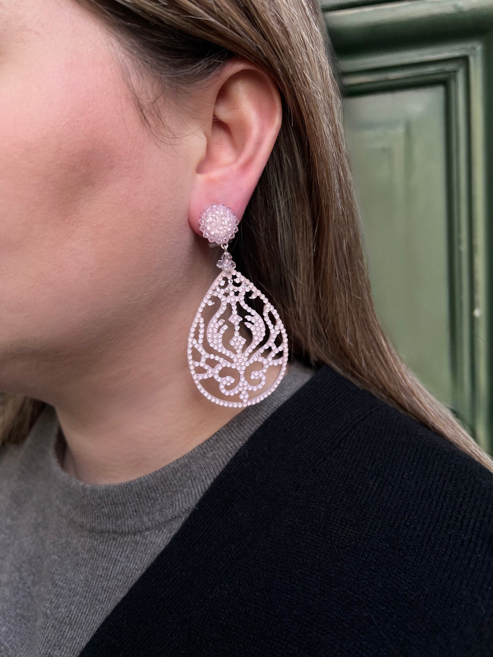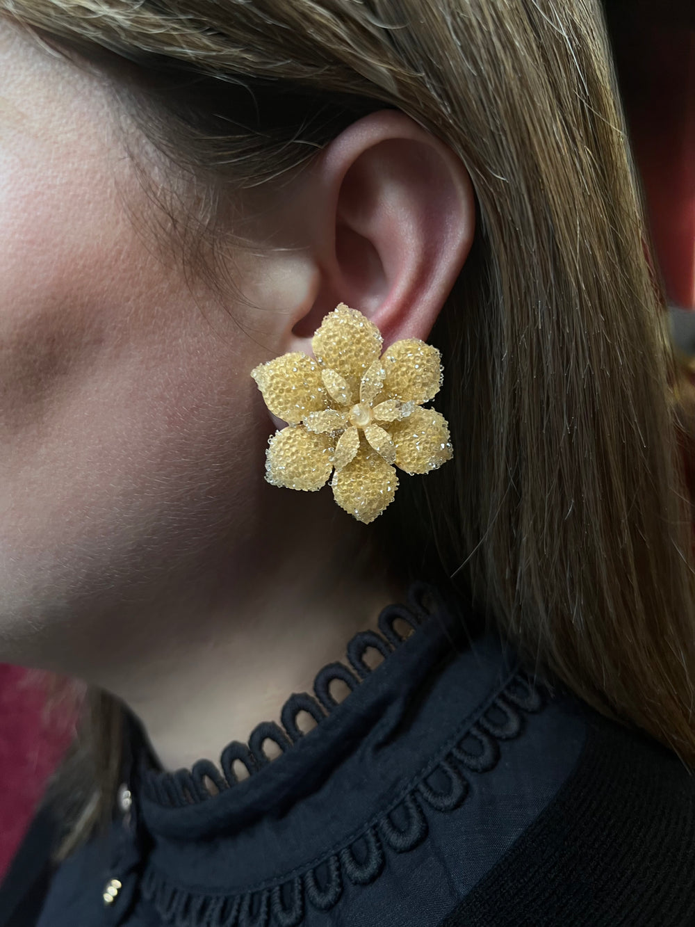 Dublos jewelry is crafted to couture standards, yet remains comfortable to wear and accessible. The earrings are lightweight and sit exquisitely on the ear, elevating any outfit with a touch of drama and high fashion.