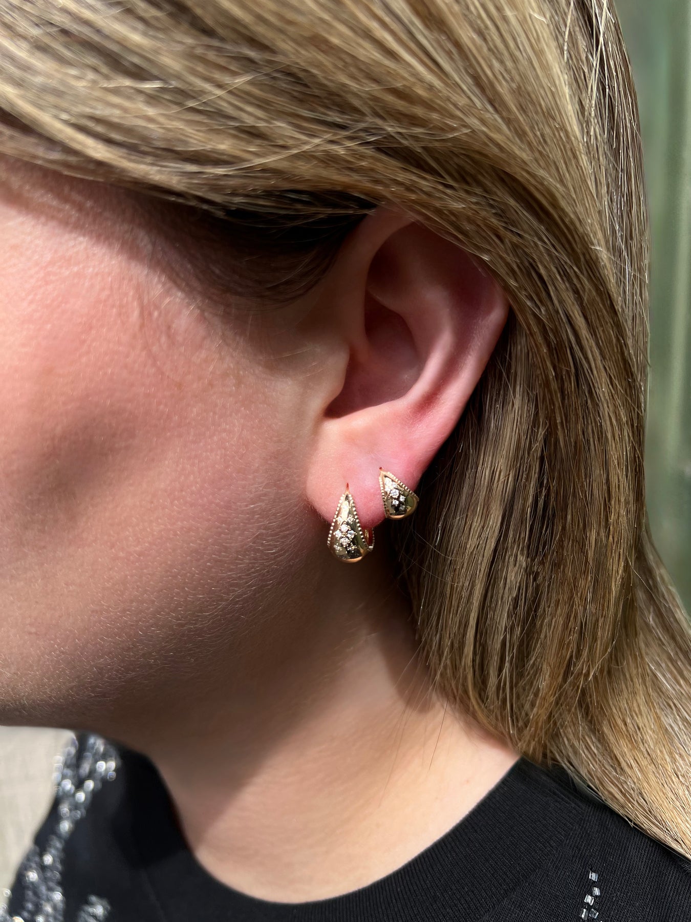 Midi-size 9k yellow gold clicker hoop earrings with scattered diamonds.