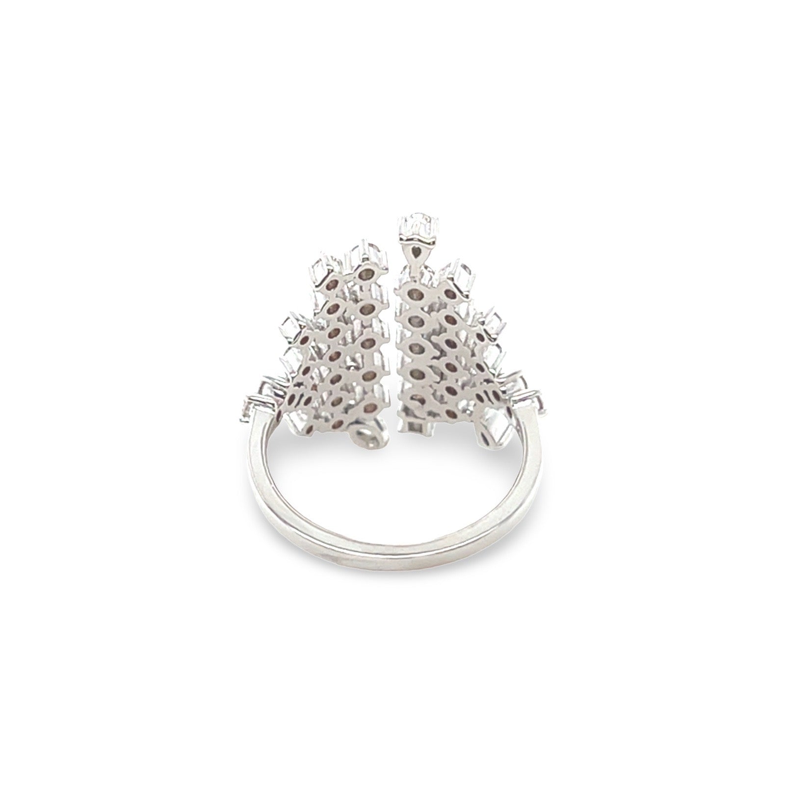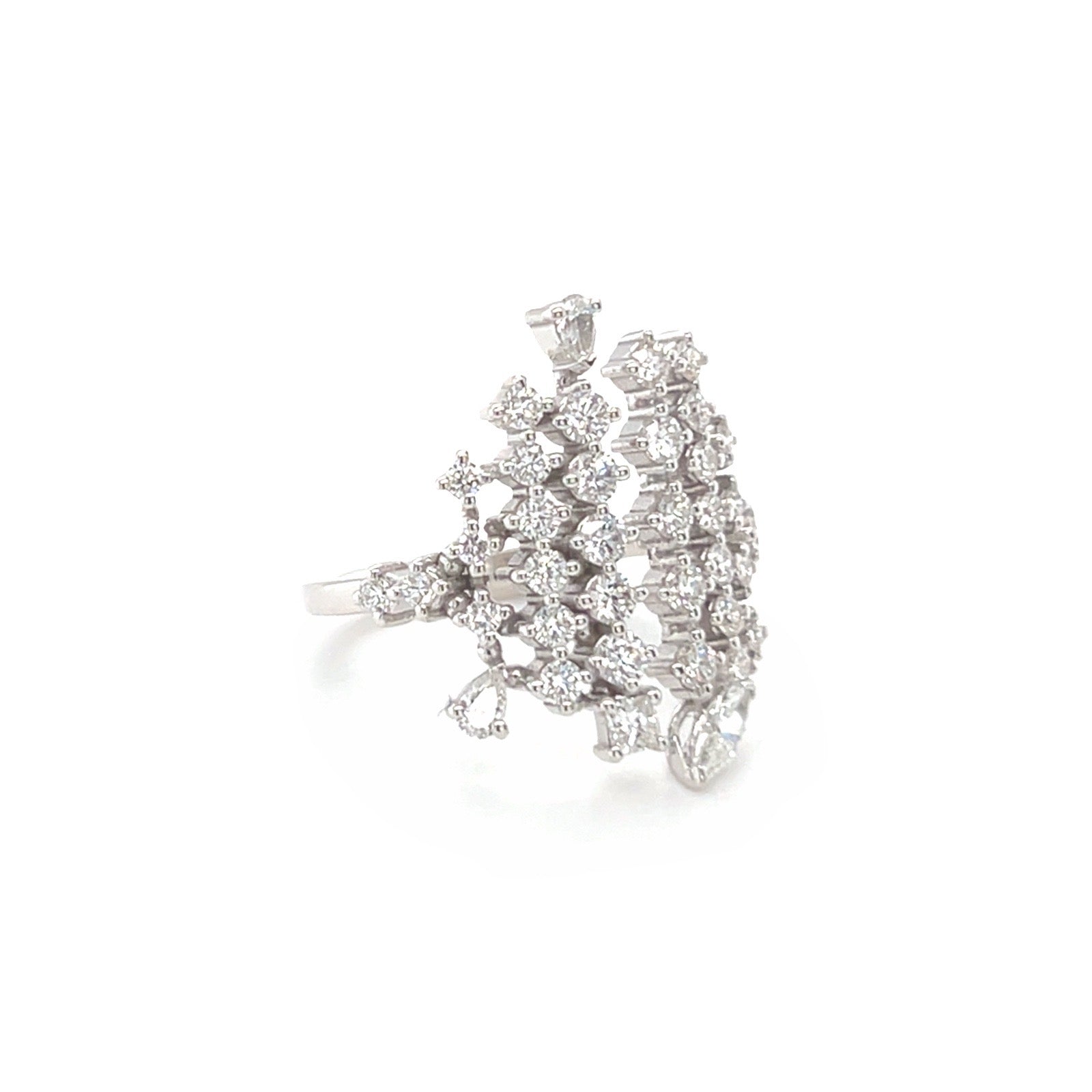 Open band 18k white gold "Frozen S" ring, set with a tapered mix of round brilliant, marquise, and pear shaped diamonds weighing 1.20cts.