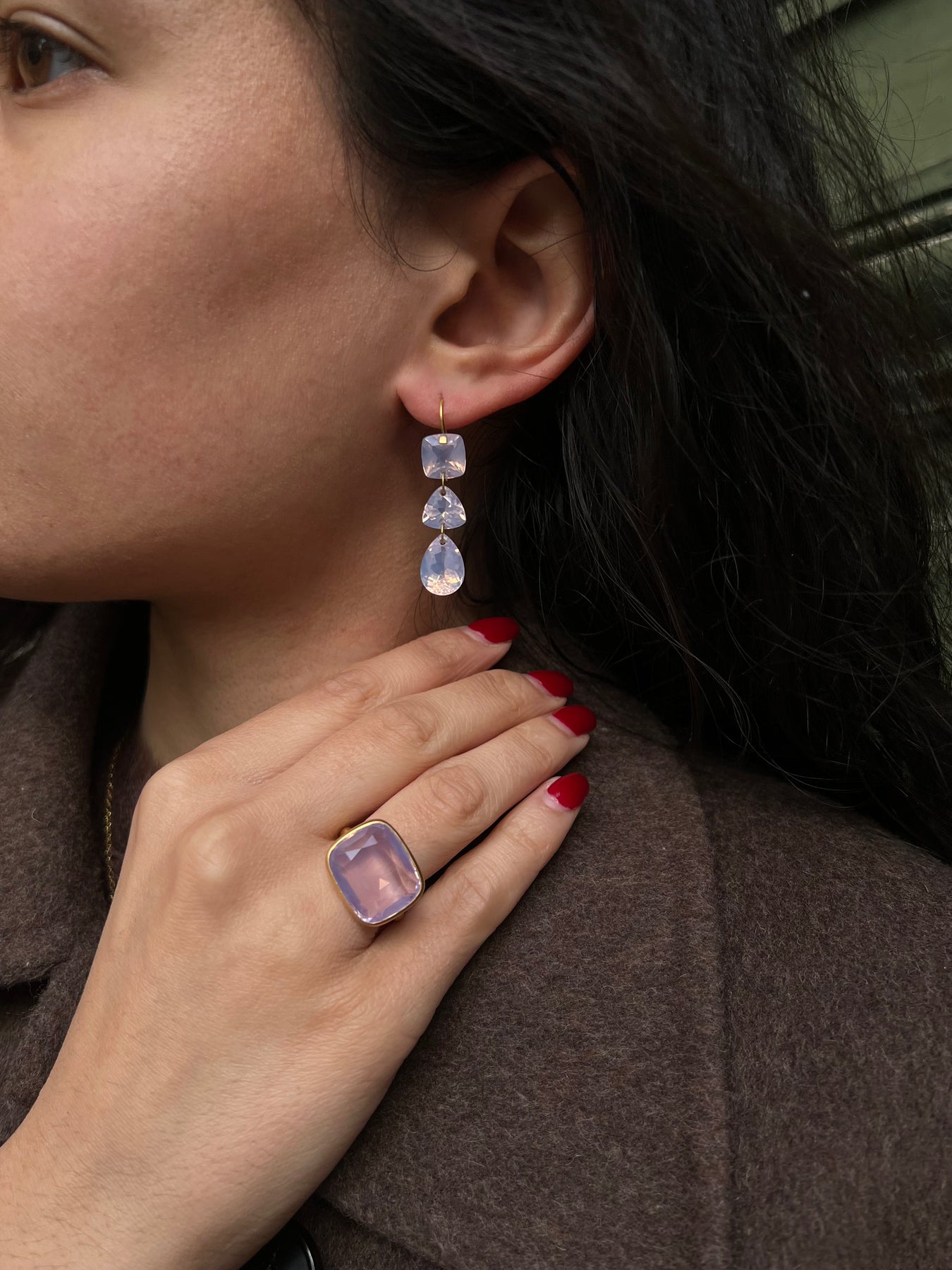 Rectangle Cushion shaped Lavender Quartz "Princess" ring in 22k yellow gold.