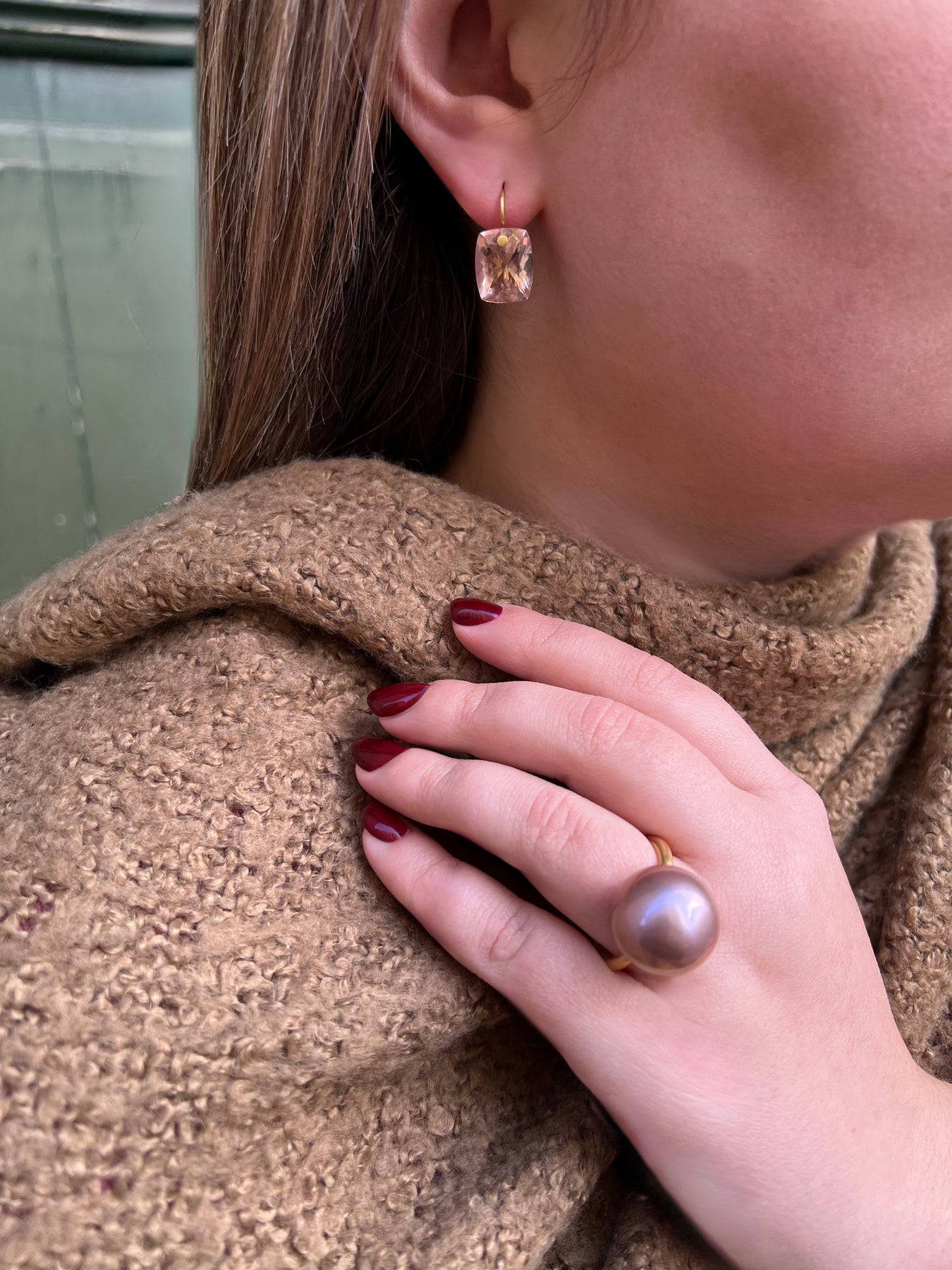 Classic pink pearl ring in 22k yellow gold.
