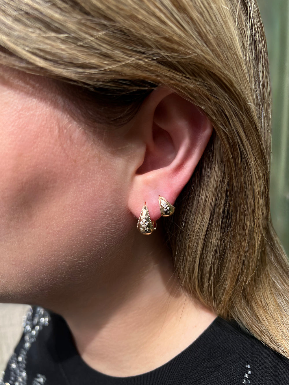 Collection highlights include diamond hoop earrings which can be adorned with gemstone and enamel pendants; delicate heart-shaped and initial pendants that can be combined to design your own necklace. Metier by Tomfoolery jewels are delicate pieces which enhance the everyday with a bold and uniquely personal style.