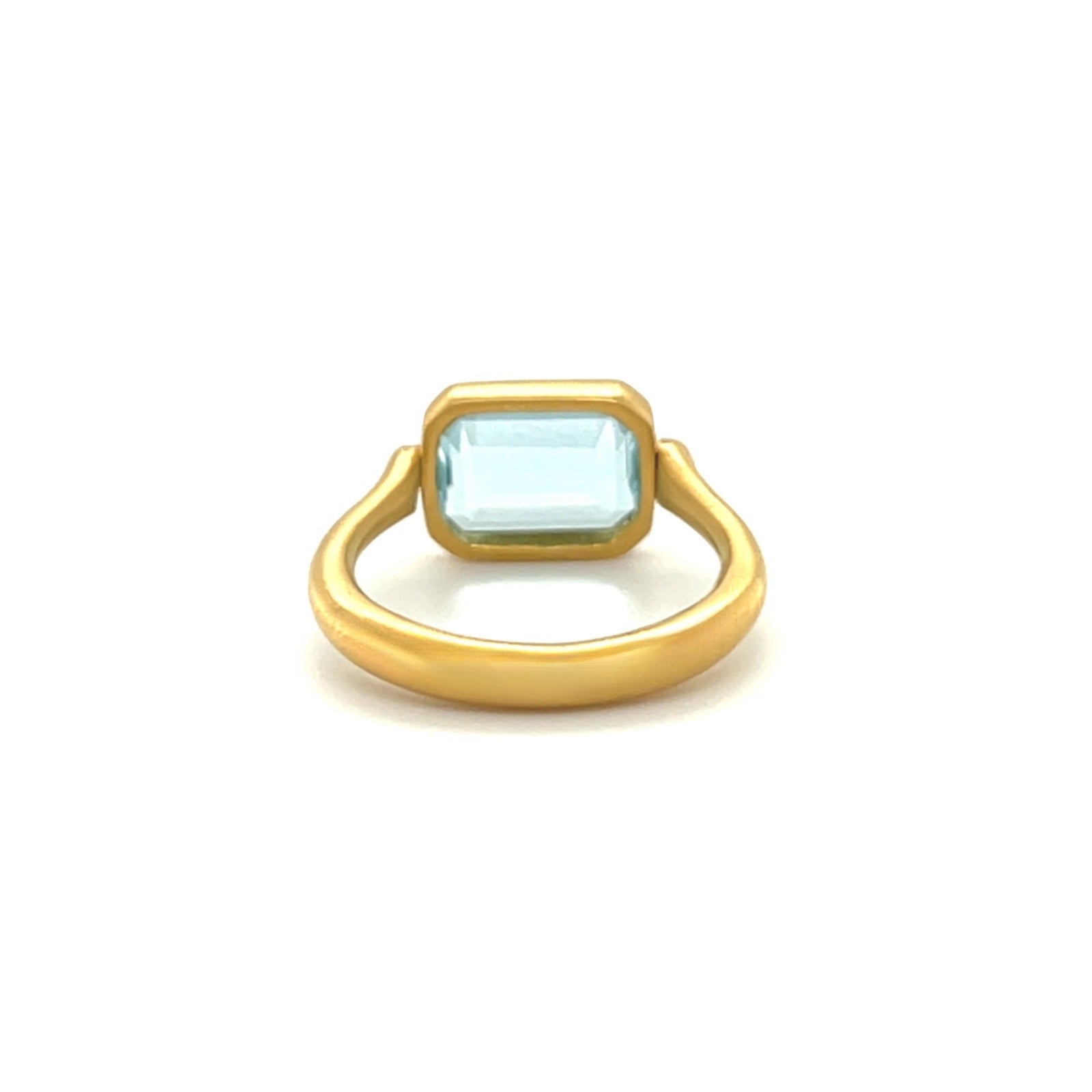 Emerald cut aquamarine "Swivel" ring in 22k yellow gold.
