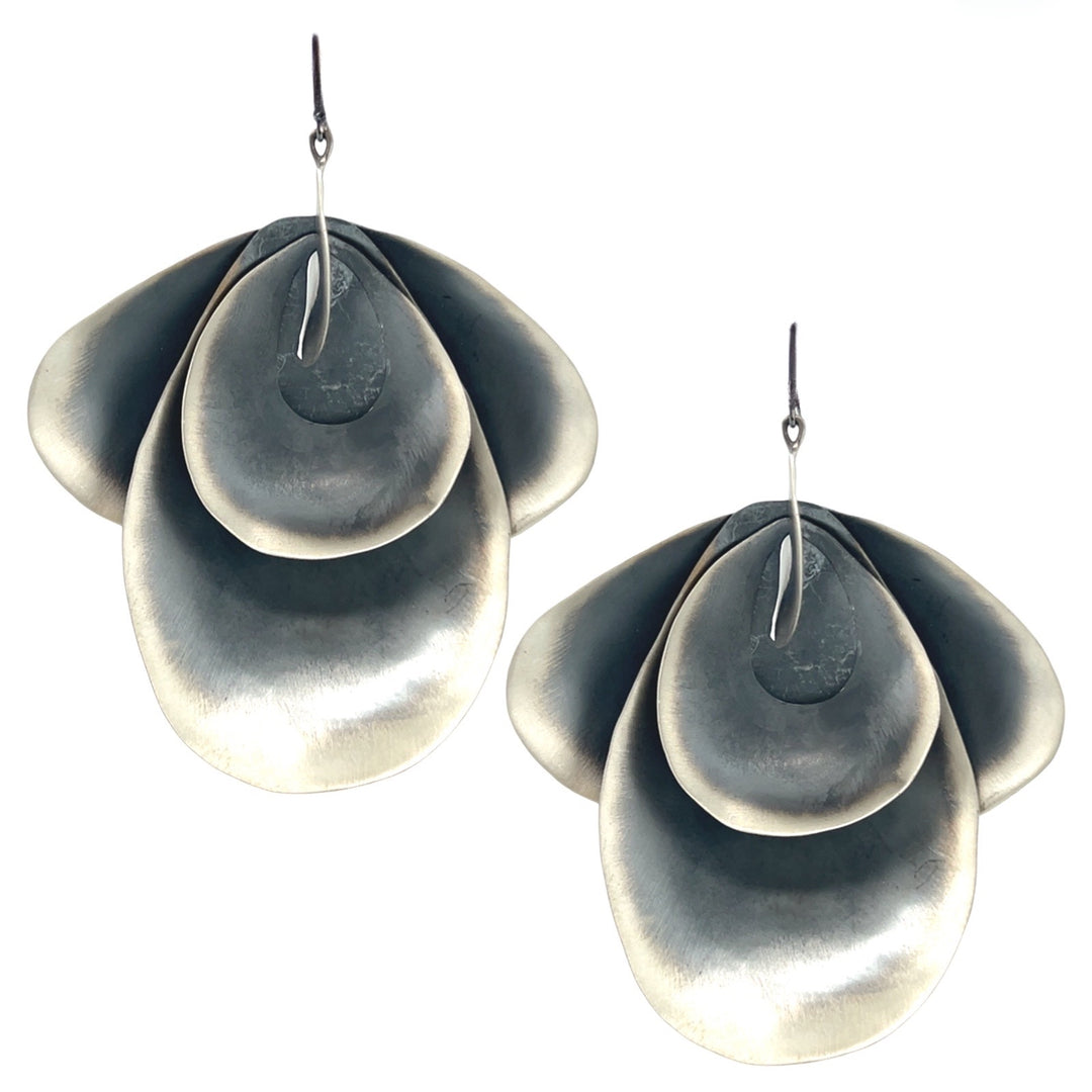 In the hands of Ron and David, rough stones are magically reborn as luminous hand-carved shapes, assembled into balanced compositions for the ears and neckline.
